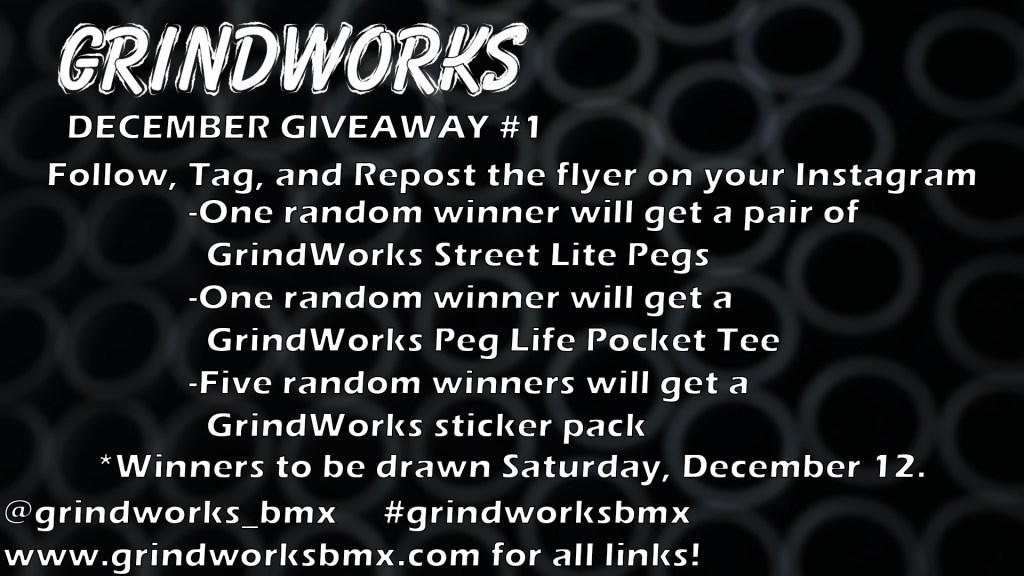 Follow @grindworks_bmx on Instagram, repost on your feed (not just share to a story), and tag @grindworks_bmx in the post to enter.
